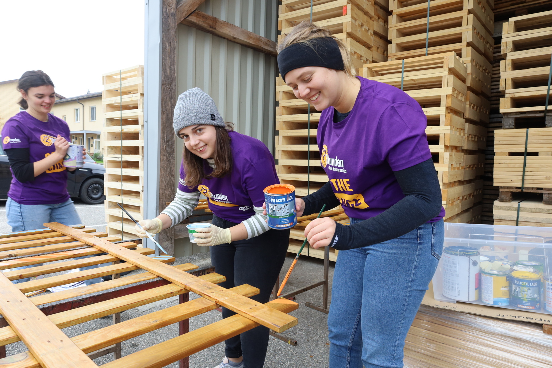 Der Projektbegleiterin Monika war das heurige 72h Stunden Projekt ein Herzensanliegen: “Ich gehe Ende des Jahres in Pension und wollte unbedingt nochmal dabei sein, auch wenn ich nicht genau gewusst habe, wie es werden wird.” Der Aufbau des Zauns stellte die fünf Student*innen des Kollegs für Sozialpädagogik jedoch auch vor einige Herausforderungen, wie Larissa, Mira und Nina berichten: "72 Stunden sind wirklich toll, aber auch anstrengend, besonders am Anfang, als bei uns einige Dinge schief gelaufen sind. Glücklicherweise haben wir dann aber alles hinbekommen, und vor allem das Bemalen des Zauns hat uns Spaß gemacht." Das Trio betonte auch, dass ihnen der Ort St. Pius gut gefallen hat. Das Gelände ist groß, und nach ihrer Erfahrung im Projekt sind sie überzeugt, dass es ein großartiger Arbeitsplatz für viele Menschen sein kann.