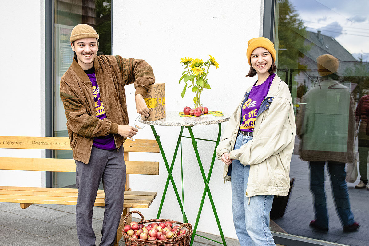 Für die Jugendlichen war die Saftproduktion eine ganz neue Erfahrung, wie Olivia erzählte: "Der Prozess des Apfelsaftmachens ist voll spannend. Lustig ist es hier auch." Die fertigen Säfte wurden dann beim Kellergassenfest in Aschach an der Steyr ausgeschenkt. Soziales Engagement ist auch dem 20-jährigen Begleiter der Jugendlichen, Stephan, ein großes Anliegen, wie er in seinem Statement betonte: "Ich engagiere mich gerne und viel sozial und das gibt mir ein gutes Gefühl. Diese Arbeit hat einen großen Wert, auch wenn sie in der Gesellschaft nicht ganz so angesehen ist."