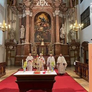 Am Sonntag, 17. November feierte die ukrainisch griechisch katholische Gemeinde im Alten Dom das Patrozinium des Hl. Josaphat. Der Seelsorger der Gemeine, P. Andrii Kityk, durfte den Festgottesdienst gemeinsam mit Kirchenrektor Dr. Slawomir Dadas, dem Generalvikar Yurii Kolasa aus Wien und dem Bischof Bryan Baida aus dem kanadischen Toronto feiern.
