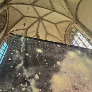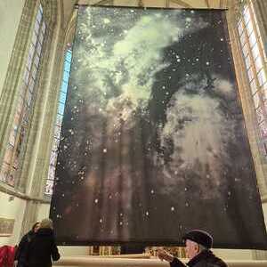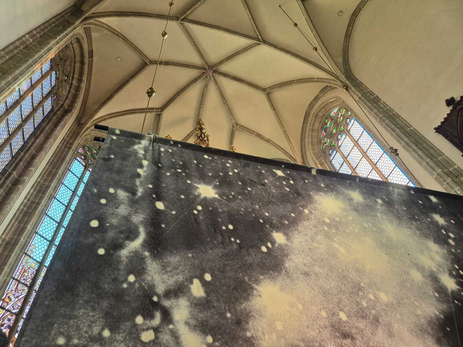 Zwischen Aschermittwoch und Karsamstag hängt das Fastentuch im Altarraum und lädt ein zum Innehalten und Nachdenken