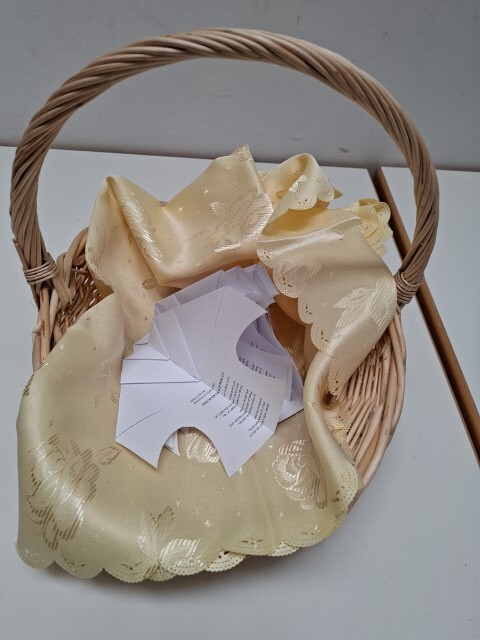 Eine gefaltete Taube mit dem Tagesgebet hat die Kinder mit nach Hause begleitet.