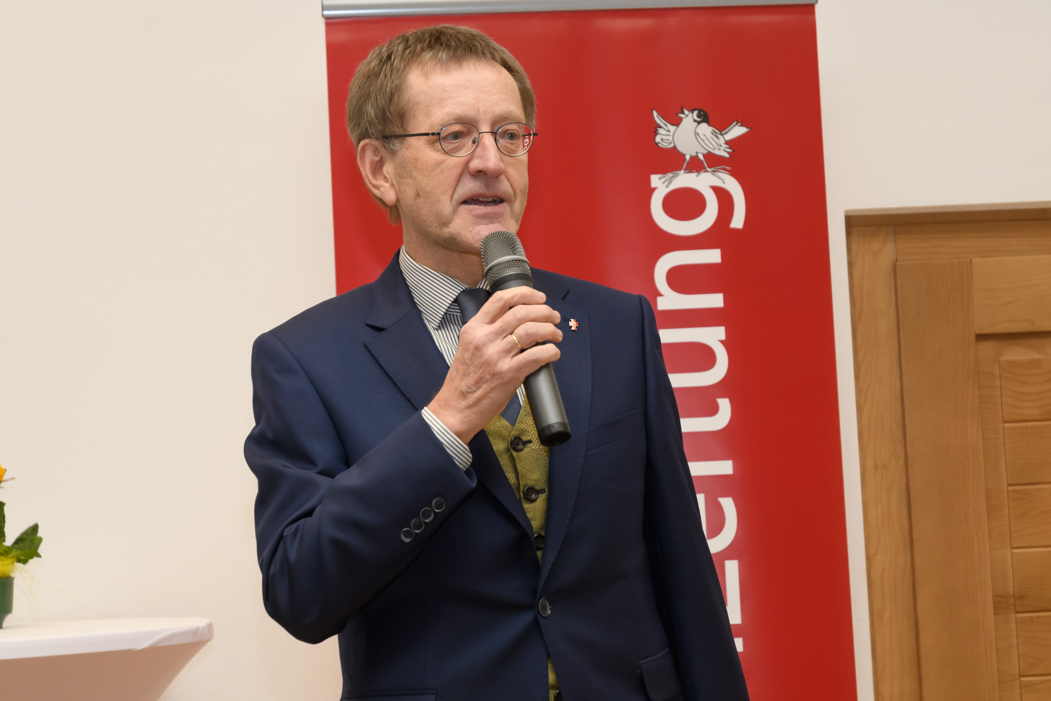 Landeshauptmann Mag. Thomas Stelzer erinnerte in seiner Ansprache eingangs an das Jubiläum „65 Jahre Staatsvertrag“, das heuer begangen wird, und ein damit verbundenes Leben in Frieden und Freiheit. Zu einem guten Leben gehöre jedoch mehr als Wohlstand und Lebensqualität, so Stelzer: ein Hineinhören in sich selbst, die Auseinandersetzung mit der Schöpfung, mit dem Glauben und dem Sinn des Lebens. Stelzer wörtlich: „Dazu braucht es immer wieder eine Einladung, eine Ermutigung – die KirchenZeitung. Und müsste man die KirchenZeitung mit einem Wort beschreiben, müsste man nur ‚Fellinger‘ sagen.“ Fast vier Jahrzehnte sei Fellingers Persönlichkeit mit der KirchenZeitung verbunden, ein Vierteljahrhundert als Chefredakteur. Stelzer würdigte Fellinger als einen Chef, der ein gemeinsames Gestalten ermöglicht habe, sowie als „Meister des Wortes mit feinem Humor“ und mit besonderem Gespür für Themen bzw. den Journalismus an sich. Der Landeshauptmann: „Die KirchenZeitung trägt dazu bei, dass Kirche im gesellschaftlichen Diskurs eine Stimme hat. Sie ist für das Weiterkommen unserer Gesellschaft ein wichtiges Gestaltungselement – und dazu hat Matthäus Fellinger einen wesentlichen Beitrag geleistet.“ Stelzer dankte Fellinger im Namen des Landes Oberösterreich und verlieh ihm für seine Verdienste das Goldene Verdienstzeichen des Landes Oberösterreich.