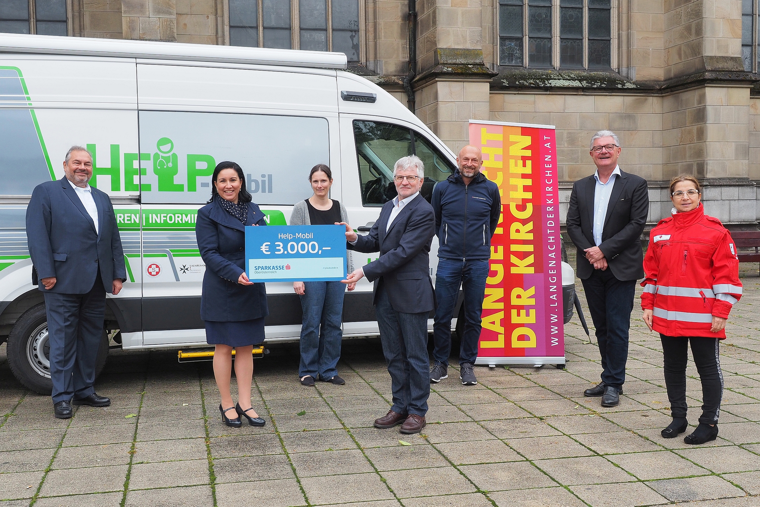 Am 5. Juni 2020, dem Tag der Langen Nacht der Kirchen, erfolgte beim Help-Mobil auf dem Linzer Domplatz die die Übergabe des Spendenschecks in der Höhe von 3.000 Euro an die Trägerorganisationen des Help-Mobils durch Maria Krone, Projektleiterin der Langen Nacht der Kirchen in Oberösterreich, und Mag.a Stefanie Christina Huber, Vorstandsvorsitzende der Sparkasse Oberösterreich. „Wir freuen uns, dass die Sparkasse Oberösterreich, die uns normalerweise als einer der Hauptsponsoren bei der Umsetzung der Langen Nacht der Kirchen unterstützt, eine namhafte Summe für die Unterstützung des Help-Mobils zur Verfügung stellt. So können wir gemeinsam einen LICHTBLICK für obdachlose Menschen ermöglichen“, so Maria Krone. Stefanie Christina Huber, Vorstandsvorsitzende der Sparkasse Oberösterreich, ergänzt: „Das Angebot der mobilen medizinischen Grundversorgung für obdachlose Menschen durch das Help-Mobil ist ein Vorzeigeprojekt. Die Sparkasse Oberösterreich unterstützt gerne dieses wohltätige Engagement für Menschen in Not.“