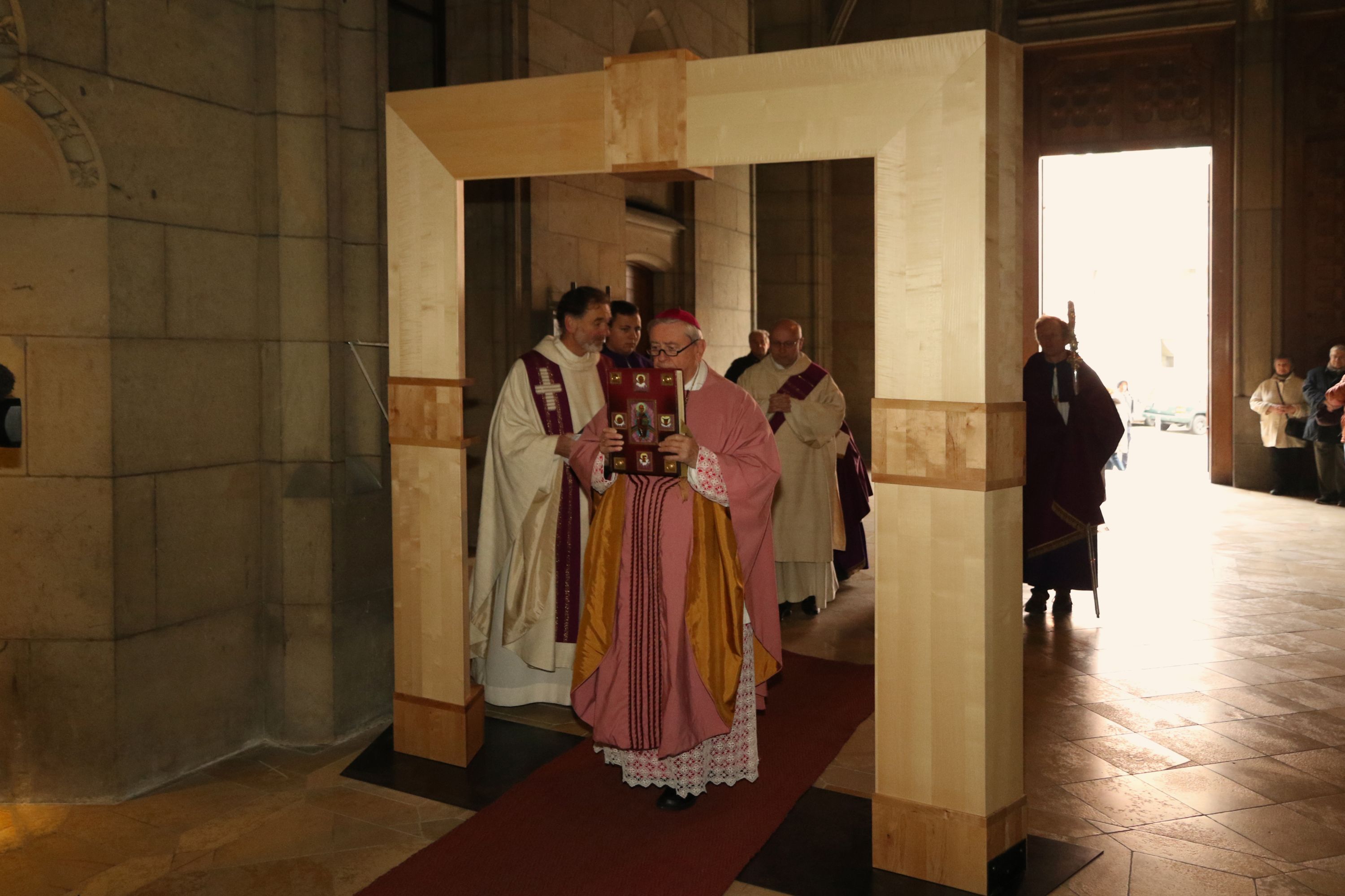 Foto 1: Linzer Mariendom: Bischof Schwarz durchschreitet die Pforte der Barmherzigkeit. (Diözese Linz / Reischl)
